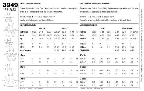 S3949 Simplicity Sewing Pattern Child S Misses Aprons Simplicity